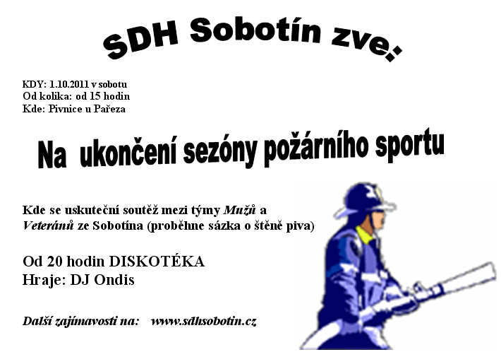 Rok uběhl jako voda a opět se blíží výroční valná schůze sboru. Chtěl bych proto pozvat všechny členy sboru a pozvané hosty v sobotu 14. ledna 2012 od 18 hodin na zbrojnici v Sobotíně.